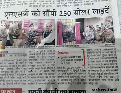 On February 23, 2017, SCALE completed donation of solar lights to 23 unelectrified villages on the India-Nepal border. In an association set up with the Sashastra Seema Bal (SSB), which is policing these border areas, 500 solar lights have been given for distribution and support in these remote villages. This includes villages of Jaiya, Khera, Ajrena, Kulari, in Champawat district, Nepal Chu, Nabi, Budhi, Garba, Rongkong etc in Dharchula district, Kajaria, Briya, Bankari, Sonha etc under 39 BN and Bodipur, Azadnagar, Nagoria under 49BN.
